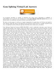Reading Online Gene Splicing Virtual Lab Answers PDF Internet Archive